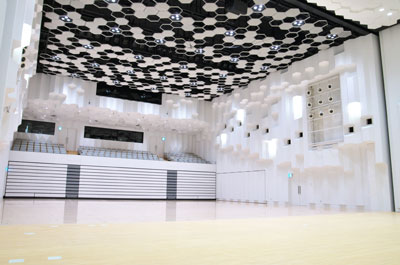 舞台は音響反射板を用いたコンサート形式、演劇等で活動可能なプロセニアム形式に対応可能。