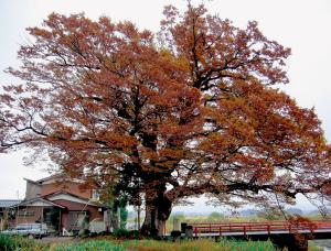 岡野町の大ケヤキは櫛池川を渡る橋のたもとにあり、橋が架けられる前は岡川(櫛池川)渡しの象徴として、また、櫛池川の右岸沿いに通っていた旧稲田街道やそこから分岐して岡野町に入る旅人の目印になっていたと思われます。