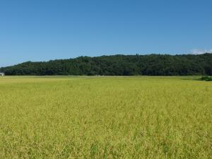 上越市の水稲の作付面積は、全国の市町村で第4位(出典:農林水産省令和4年度作物統計)と国内有数の米の大産地です。その面積は、11,300ヘクタールで、東京都の山手線の内側の面積の1.8倍の広さを誇ります。収穫の秋には、見渡す限り黄金色の稲穂が広がり、まさに絶景です。