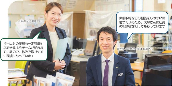 また、3カ月に一度、「見える化巡視」を行い、職場ごとにどの業務にどのくらいの時間が掛かっているかなどを測定・分析し、改善につなげています。効率性、生産性を高めることで、休暇を取得しやすい環境にしています。