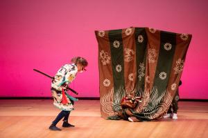 現在は、「玉遊びの舞」と、天狗と獅子が織りなす様子がおもしろおかしく演出され、最後に勝った天狗が太刀を振り回し、舞台狭しと舞う圧巻のクライマックスの「天狗と獅子の決闘の舞」が舞われています。