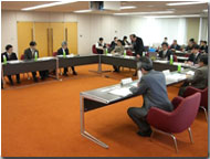 上越市役所での会議の様子 (財)地方自治総合研究所での会議の様子 市長への報告