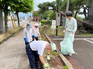 梅雨の時期でもあり雑草の成長が早いため花壇が雑草で覆われていましたがメンバー同士で協力し合いながら行い、綺麗になりました。
