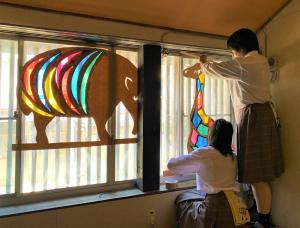 南本町三丁目の夜間景観の向上のための景観まちづくり活動として、上越総合技術高等学校の生徒さんが影絵の作製を行いました。