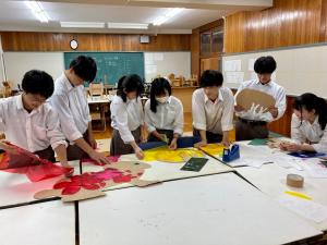 令和5年6月25日(日曜日)に町内会の皆さんと上越総合技術高等学校の生徒さんが町内会のイベント時に設置する灯籠の塗装作業とミニ行灯の作成をしました。
