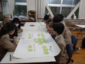 上越総合技術高等学校の生徒さんが南本町三丁目のまちづくり活動について、どのようなことを取り組んでいったら良いかなど、ワークショップ形式で検討を行いました。