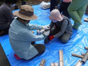 前回も参加されたメンバーが多かったことから、作成のスピードが早くなり、たくさんの竹筒が完成しました。